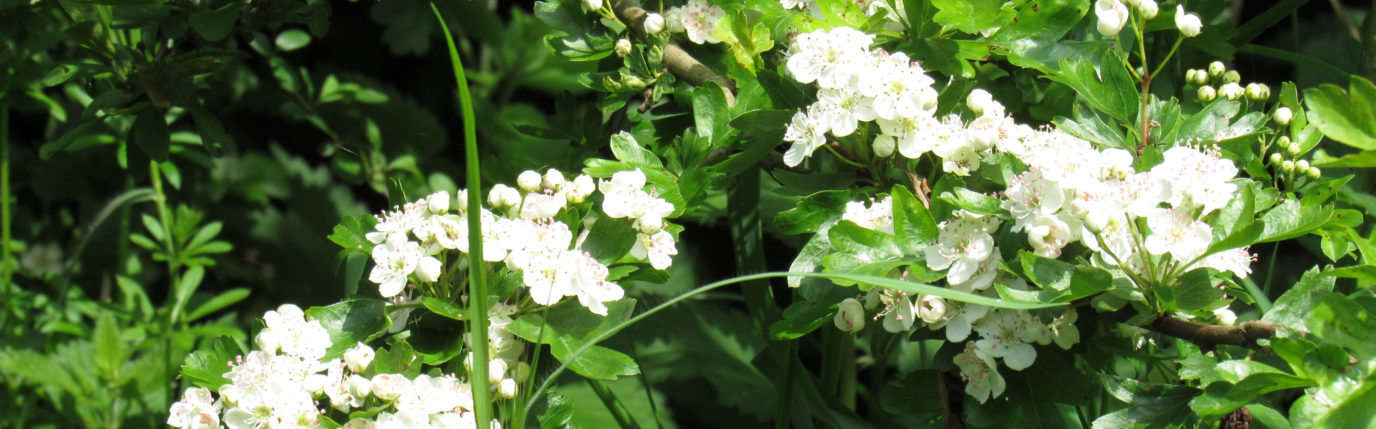 Hawthorn blossom at the woodland (photo: Sue Ashton, 2023)
