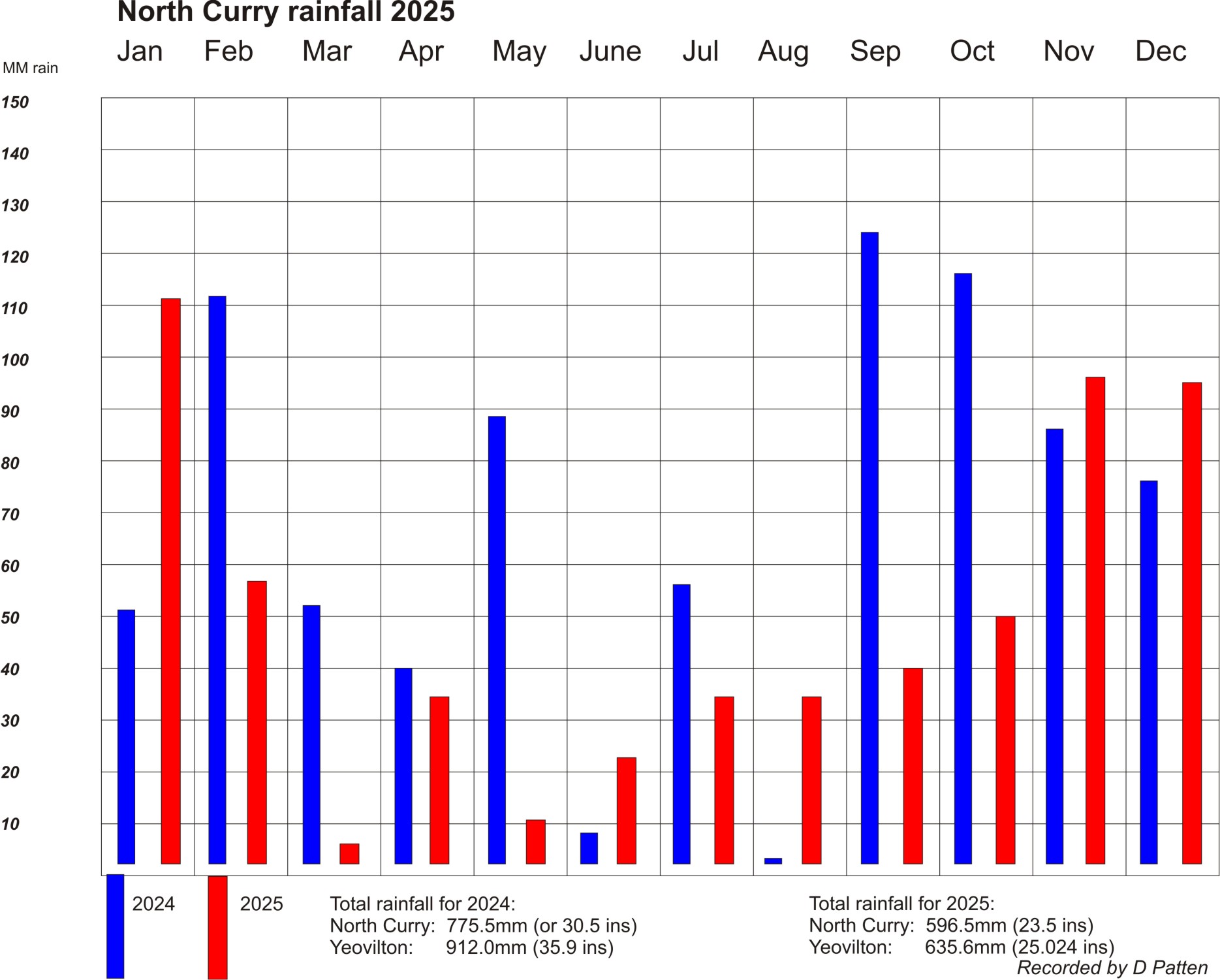 Dave Patten has sent us the rainfall statistics he recorded for 2024. His graph below compares the figures with 2023 and show some interesting variations.