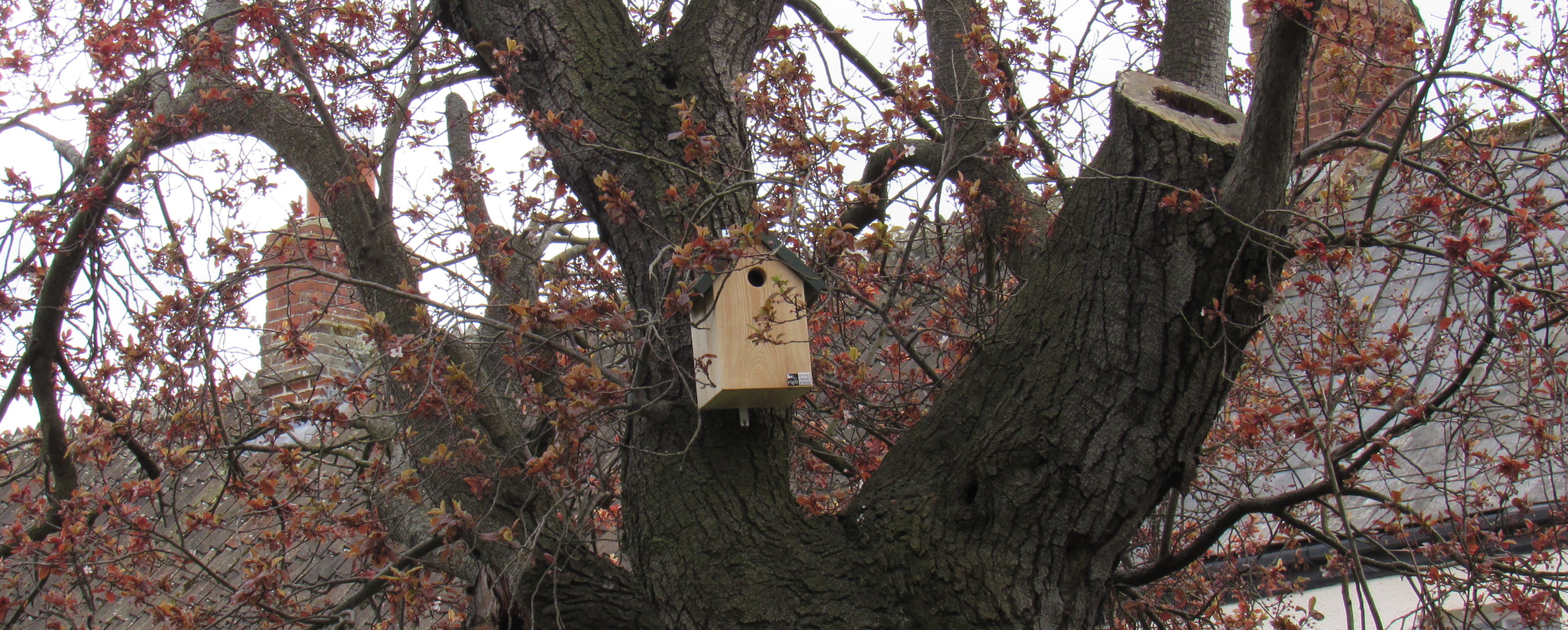 As well as the two boxes for owls in the churchyard mentioned above, we have four boxes suitable for owls around the White Street site. Two were purchased thanks to the generosity of donors and were put up in the large oak and ash trees on the western boundary of the Community Woodland in 2017 and 2018.