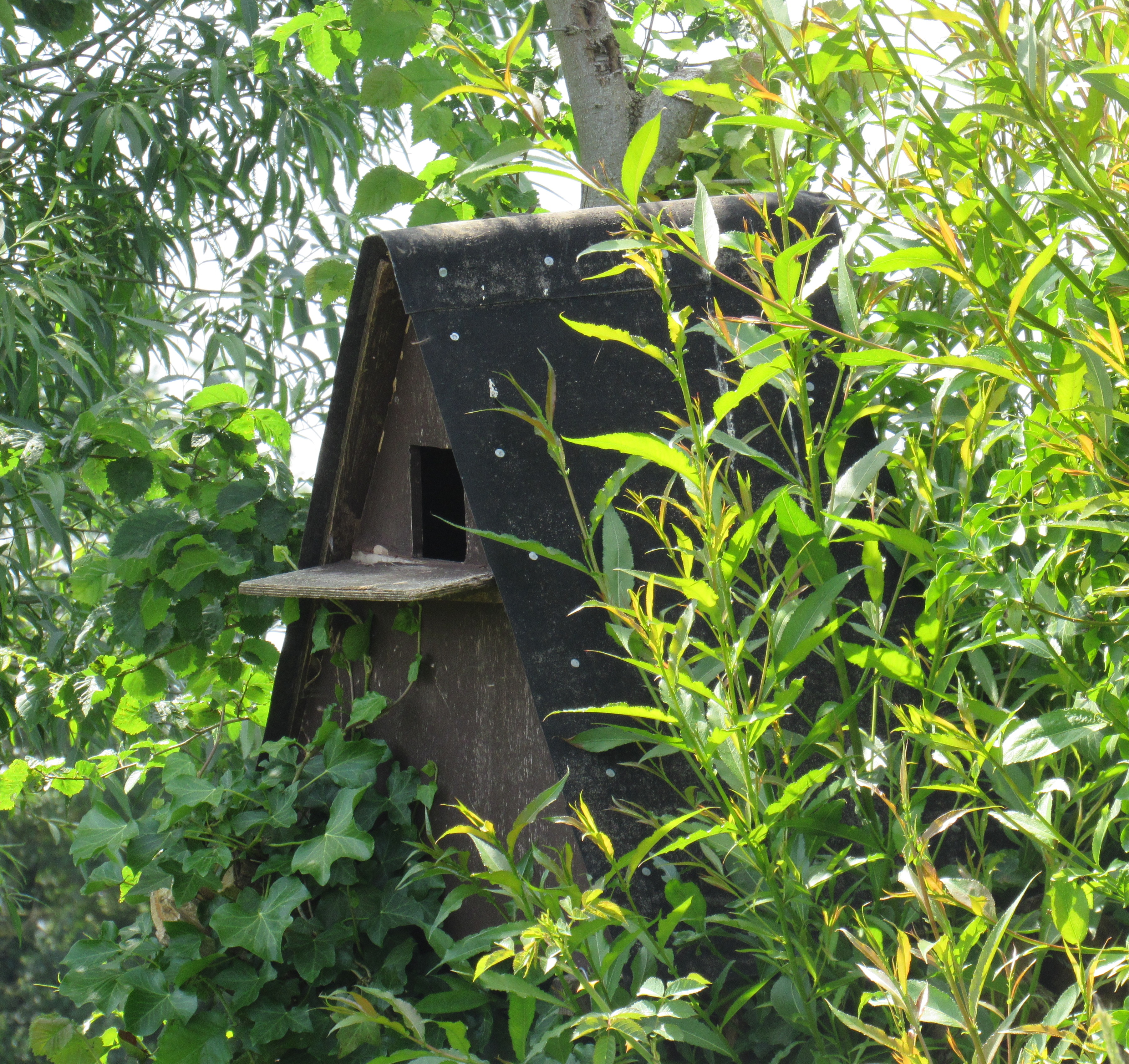 An old, dilapidated box suitable for owls was discovered while pollarding a willow tree on the boundary of the new youth football field. Using this and other recycled materials, two new boxes were made. One has been re-installed in the willow; the other has been put up in the large oak tree by the old pond in the corner of the cricket pitch.