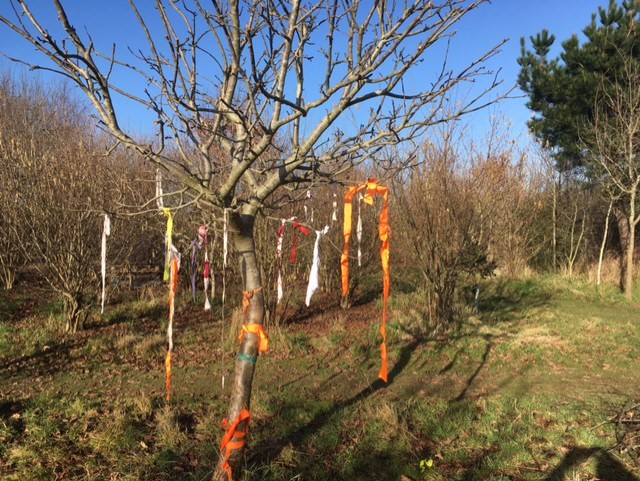 Apple tree decorated at Wassail, January 2022 (photo: Phil Stone)