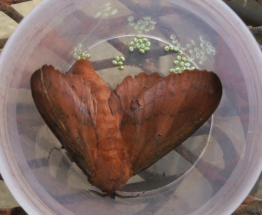 We also saw micro-moths but did not record them. The Lappet proved to be a female and laid eggs overnight.