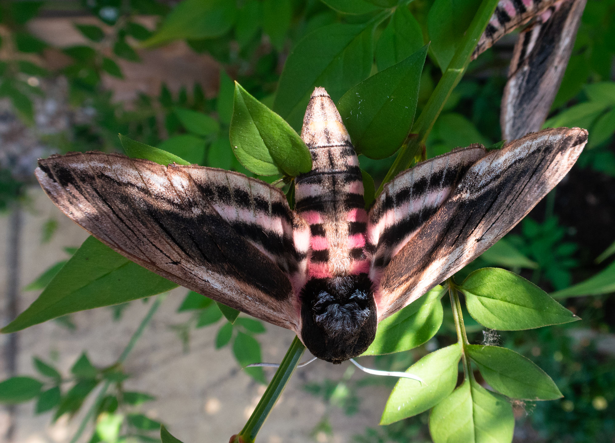 Another couple of Hawkmoths turned up in the trap on 13 June, following the two pristine Eyed Hawkmoths that I had caught on 23 May. This time they were Privet Hawkmoths, one of the largest of our native Hawkmoths, and therefore of our moths overall. It is a splendid moth, with an equally magnificent caterpillar, which I was always hoping to find as a child but rarely did, though they were not uncommon in the privet hedges which surrounded houses in those days!