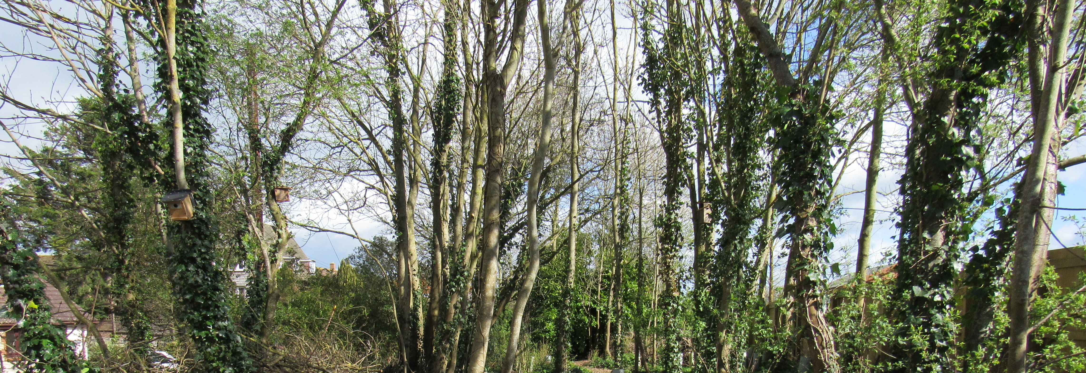 Here, there are many mature trees, some with bird boxes, as well as new planting.