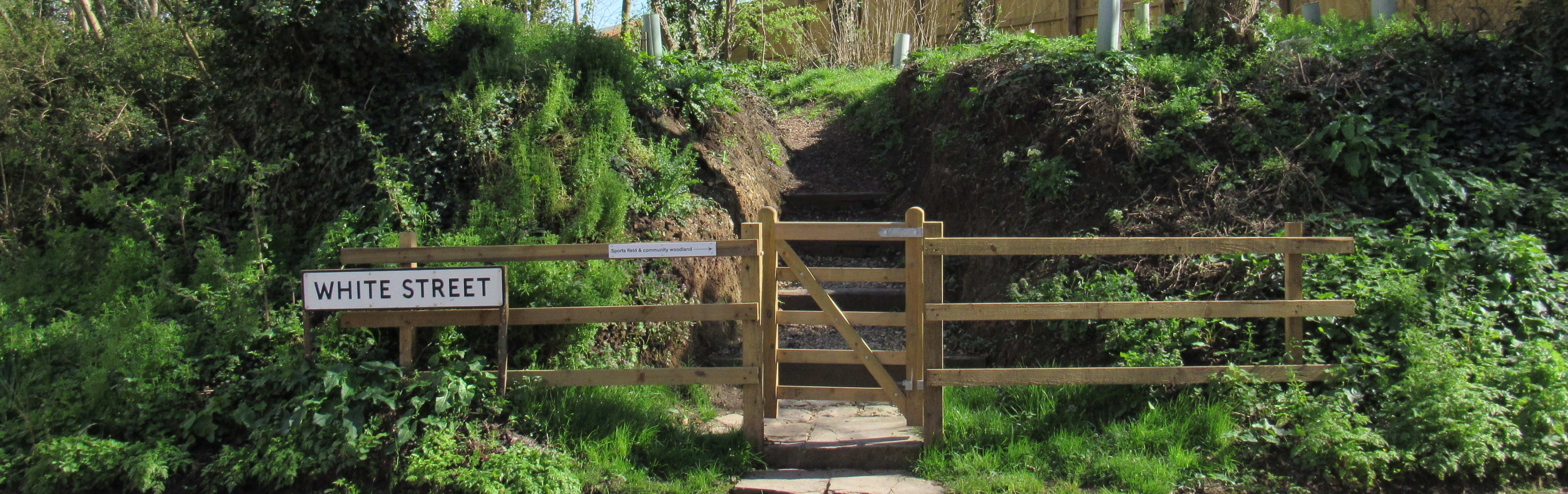 This is a small area of woodland on the corner of White Street and Stoke Road alongside the new houses of St James’s Court. It is a safe route off the busy Stoke Road and gives easy access to the sports fields up the steps from White Street. Please take care when crossing at the junction of White Street and Stoke Road.