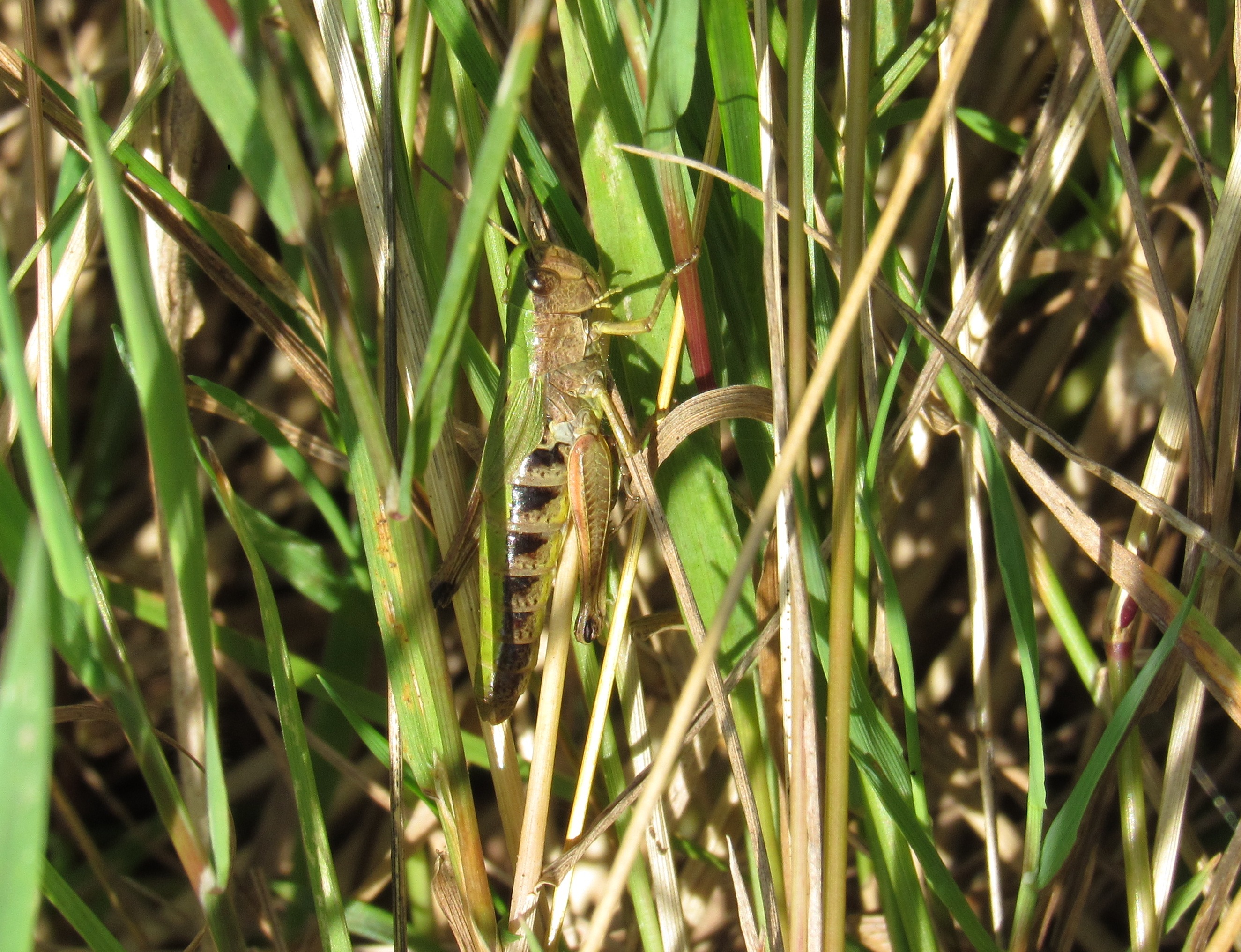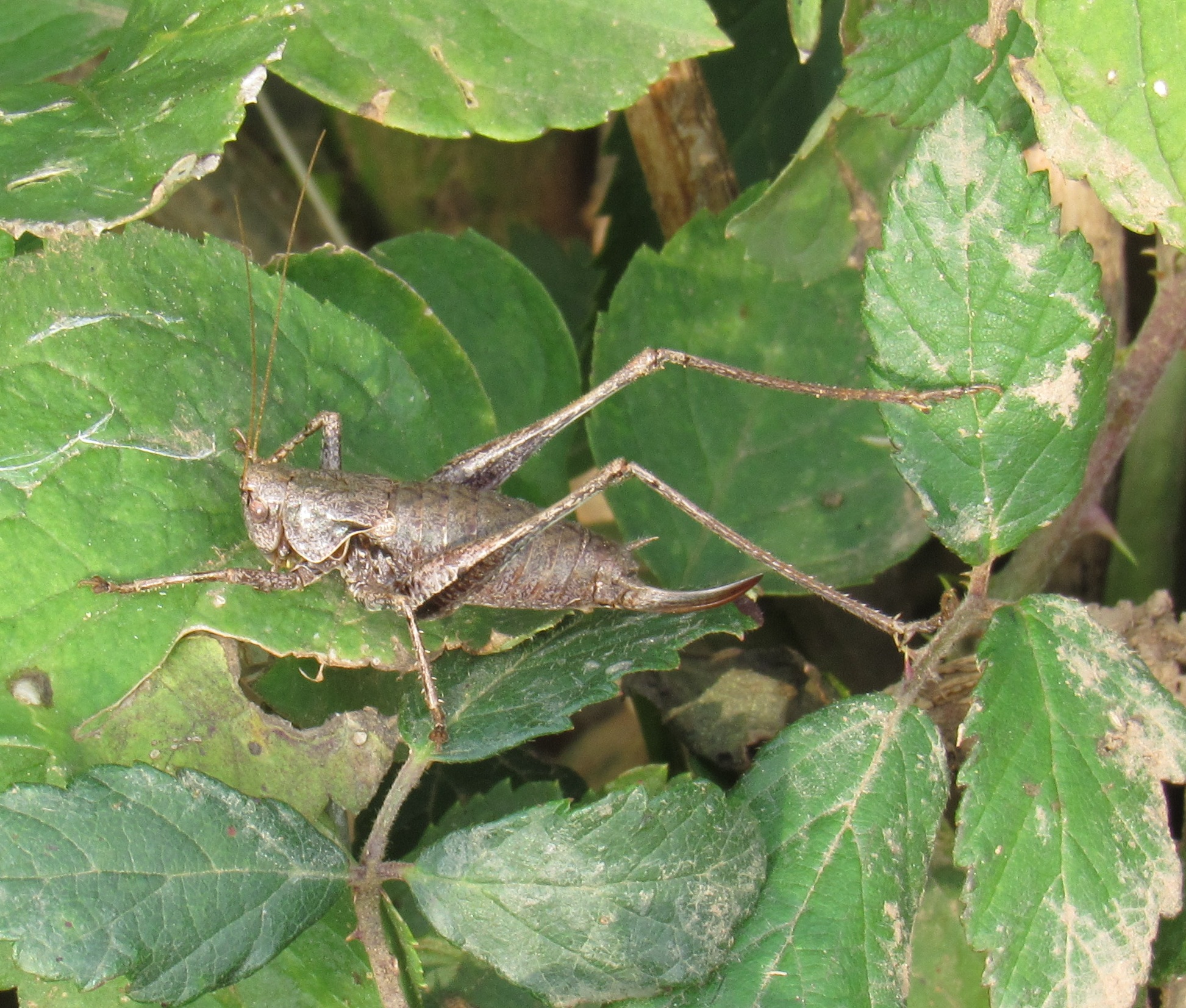 While grasshoppers are herbivorous and are more active in the day, crickets are omnivorous and tend to sing at dawn and dusk. Grasshoppers and crickets can often be heard rather than seen but you may occasionally see one jump in the vegetation (photo Sue Ashton).